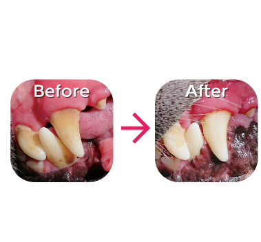 この製品は、スケーリング時の 全身麻酔を否定するものではなく、麻酔ができなくなったシニア犬や体の弱い愛犬愛猫のために、少しでも歯石を軽減できないかと考え誕生したデンタルケア製品です。